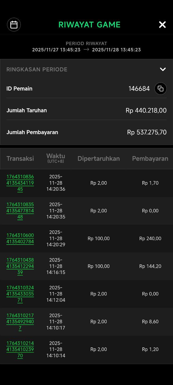Cara Mengambil Riwayat Permainan :
